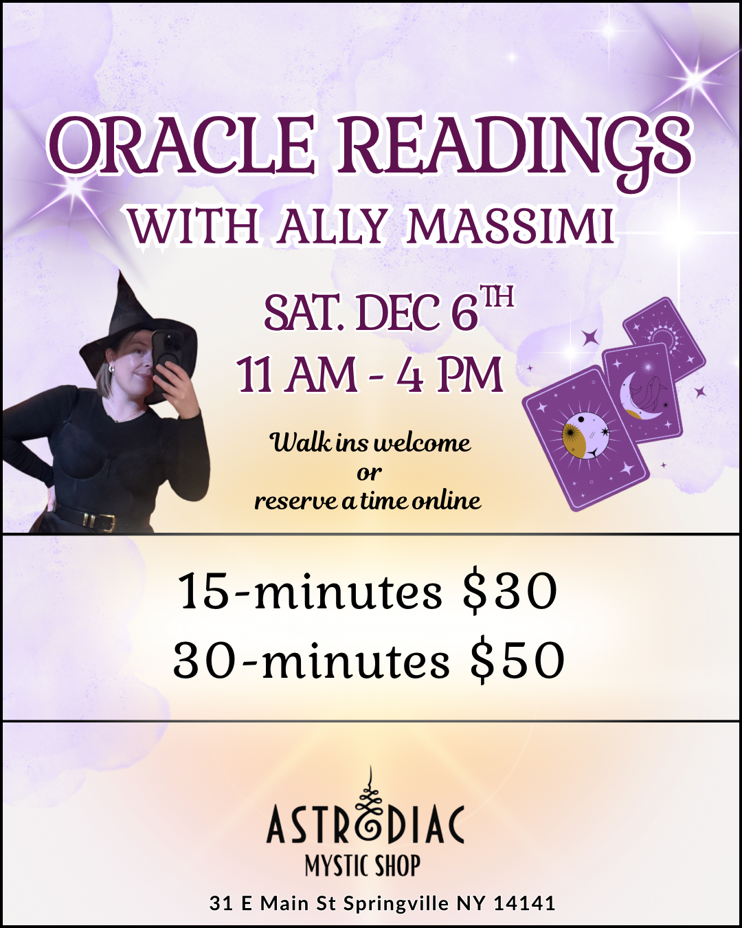 At Astrodiac Mystic Shop, we are honored to introduce our resident oracle reader, Ally Massimi.